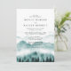 La elegante y rústica invitación de boda presenta una montaña de acuarela con árboles y las iniciales de los novios en la parte posterior con información de la boda.