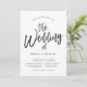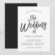 Una invitación de boda única con estilo de letra de baile seguida de los detalles únicos de su boda en negro y blanco.
