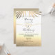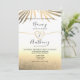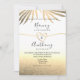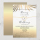 Sencilla y elegante invitación de boda de playa de arena con hermoso corazón de cuerda con foil y enormes hojas de palma doradas. La elección perfecta para bodas contemporáneas de verano.