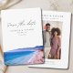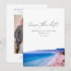 Captura la belleza de Malibu e invita a tus invitados con estilo con esta invitación de guardar la fecha. La parte delantera muestra una impresionante fotografía de la playa de Malibu, estableciendo el tono perfecto para el día de tu boda. Agrega tu propia foto en la parte posterior y personaliza el texto para hacerlo tuyo.