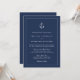 Nuestras elegantes invitaciones nupciales presentan un estilo náutico clásico con un aspecto limpio y minimalista. El diseño incluye las iniciales que flanquean el ilustracion de ancla de un barco blanco para crear un monograma preppy clásico. El elegante bloque y la escritura con letras en blanco sobre un fondo azul marino atemporal completan el aspecto. Perfecto para el club náutico, el barco, la playa o los bodas de verano.