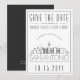 Una invitación única de "save the date" para una boda que tendrá lugar en la hermosa ciudad de San Antonio, Texas. Esta invitación presenta una ilustración estilizada del horizonte único de la ciudad con su nombre debajo. A esto le sigue la información de su día de boda en un estilo abierto y lineal coincidente. En el reverso de la invitación hay un color gris oscuro para complementar la apariencia y sensación. Todos los elementos individuales de la tarjeta de invitación están desbloqueados, así que siéntase libre de cambiar cualquier detalle necesario, como tamaños de fuente, estilos y más, utilizando la función de personalización. Puede agregar una foto al reverso y aplicarle un filtro en blanco y negro. ¡Disfrute siendo creativo y haciendo que sea suyo!