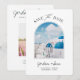 Captura la belleza de Santorini e invita a tus invitados con estilo con esta invitación de guardar la fecha de dos fotos. La parte delantera muestra una impresionante fotografía de un Santorini, estableciendo el tono perfecto para el día de tu boda. Agrega tu propia foto en la parte trasera y personaliza el texto para hacerlo tuyo.