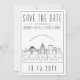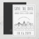 Una invitación única de "save the date" para una boda que tendrá lugar en la hermosa ciudad de Savannah, Georgia. Esta invitación presenta una ilustración estilizada del horizonte único de la ciudad con su nombre debajo. A esto le sigue la información de su boda en un estilo abierto coincidente. En el reverso de la invitación hay un color gris oscuro para complementar la apariencia y sensación. Todos los elementos individuales de la tarjeta de invitación están desbloqueados, así que siéntase libre de cambiar cualquier detalle necesario, como tamaños de fuente, estilos y más, utilizando la función de personalización. Puede agregar una foto al reverso y aplicarle un filtro en blanco y negro. Diviértase siendo creativo y haciendo que sea suyo.