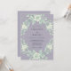 Un fondo de lavanda suave púrpura está decorado con un arreglo exuberante de rosas marfil y follaje verde salvia. El estilo de acuarela y los delicados elementos florales crean una atmósfera serena y romántica. Esta estética etérea se ve realzada por una paleta pastel, lo que la hace ideal para un evento inspirado en la naturaleza en primavera o verano.