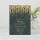 Un ilustracion de ramas arbóreas con exuberante vegetación y follaje colgante, recubierto digitalmente de oro, sobre un brillante fondo verde esmeralda, decora esta invitación nupcial de verano de primavera con un tema de bosque encantado. Una invitación elegante y moderna para un boda de cuento de hadas, es la invitación perfecta para bodas de novias que aman el entorno de los cuentos de hadas, el bosque de hadas o el tema del hadas y el verde esmeralda.