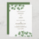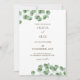 Elegante y rústica invitación a bodas estéticas con eucalipto. El sencillo y elegante Wedding Invitation presenta hermosas ramas de hojas de eucalipto con color de piel y se ha combinado con una caligrafía caprichosa y un elegante tipo de letra serif en oro y gris. Para realizar cambios avanzados, seleccione la opción "Hacer clic en más personalizar" en Personalizar esta plantilla.