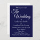 Estilo sencillo, invitación a la boda que presenta un fondo de color azul marino y moderno junto con los futuros nombres de novias y novios y fecha de evento, hora, ubicación y registro impresos en escritura blanca y estilizada. Personaliza tu invitación de boda reemplazando la información con la tuya. Seleccione el estilo y la cantidad del papel de invitación. Diseñado para coordinar con nuestra colección de Bodas Navy Blue Simple Style.