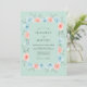 Este diseño muestra un fondo verde menta calmante decorado con una delicada guirnalda de acuarela de flores de melocotón y azul suave. El follaje artísticamente representado y los ramitos de eucalipto complementan las flores, evocando una sensación de romance tranquilo. La paleta pastel y la estética ligera hacen que esta obra de arte botánica sea ideal para un evento sofisticado de clima cálido.