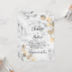 Impresión de mármol como fondo decorado con brotes de eucaliptos dorados. Personaliza y tu nombre y detalles de la ceremonia.