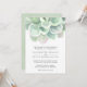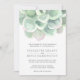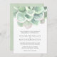 Invitación a la boda botánica con una gran acuarela verde sabio pastel suculenta en la parte superior y tus detalles en un suave tipo de letra gris. En la parte trasera hay un lavabo de acuarela verde. El gran suculento de la parte superior da a un diseño sencillo y tiene un gran elemento natural. Estas invitaciones son perfectas para un boda del desierto en primavera o verano.
