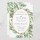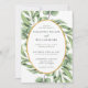 Diseño característico de la acuarela eucalipto suculentos bordes con salpicaduras doradas pintadas a través de las esquinas , acuarelas en tonos verdes. Elementos coincidentes disponibles en la colección