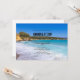 Una invitación de boda con una fotografía que presenta una playa en la isla griega de Creta. Una hermosa playa tropical azul con oleaje espumoso. Maravilloso destino de viaje tranquilo.