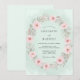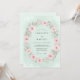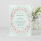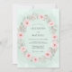 Este diseño de acuarela presenta un delicado despliegue de peonías rosadas y follaje suave verde salvia sobre un sereno fondo verde menta. La estética etérea captura un ambiente romántico y aireado perfecto para un evento de primavera. Las pinceladas elegantes crean un efecto suave y pictórico que enfatiza la belleza natural y la gracia floral.