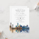 Esta elegante invitación de boda para una fiesta de felices para siempre en Dallas con acuarela del horizonte de la ciudad puede ser personalizada con tu información en tipografía chic. Diseñado por Thisisnotme