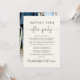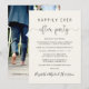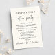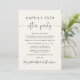 Elegante anuncio de boda o fuga de novios de color crema claro para informar a familiares y amigos que se fugaron o redujeron el número de invitados en su boda, y para invitarlos a una recepción de boda o fiesta de celebración. En el frente, "Fiesta para siempre feliz" está escrito en una mezcla de tipografía simple y una elegante letra con florituras, y puede personalizar su mensaje e invitación con más detalle y sus nombres en una letra tipo firma. El reverso presenta su foto de boda favorita, sus nombres de pila y la fecha de la boda.