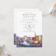 Esta elegante invitación de boda para una fiesta de feliz para siempre en el horizonte de Las Vegas con acuarela puede ser personalizada con tu información en tipografía chic. Diseñada por Thisisnotme©