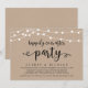 Hermosas Luces de Cadena de Granja Rústica Moderna, fuente de letra Script Negra en Fondo de Papel Kraft, Anuncio de Huida de Novios, tarjeta de invitación (Fiesta Feliz para Siempre). Esto es perfecto para la recepción de su boda y la fiesta de celebración después de la boda. Agregue sus detalles en la fuente / letra coincidente.