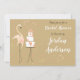 Un diseño boda divertido y elegante con un toque retro. Un par de flamencos de melocotón están a ambos lados de una torta casera con corazones de melocotón, confetti, anillos de oro y curvas contra un fondo de cambio de color marrón neutro. Un diseño de personalizable para que puedas personalizar con tu propio texto, imágenes e ideas. Imagen original de arte digital.