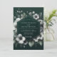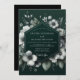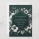 Experimenta un ambiente de romance dramático con este elegante diseño botánico. Un fondo verde esmeralda profundo establece un escenario impactante para luminosas anémonas blancas y suaves flores crema. Delicado follaje en tonos de carbón y verde apagado se entrelaza, creando un efecto de claroscuro sofisticado perfecto para una ocasión refinada.
