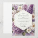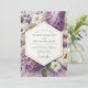 Adopta una estética romántica con este elegante diseño floral. Racimos exuberantes y pictóricos de flores de lilac crean una atmósfera suave y soñadora. Los acentos de flores blancas cremosas y hojas verdes sutiles añaden profundidad y contraste a los hermosos tonos de púrpura. Esta composición artística es perfecta para una unión de primavera o verano.