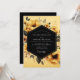 Experimenta una atmósfera de elegancia sombría con este diseño floral artístico. Las luminosas flores de marigold y las amapolas doradas florecen contra un fondo oscuro y rico. El estilo de acuarela pictórica y el follaje profundo y silenciado crean un ambiente sofisticado y dramático, perfecto para una unión otoñal.