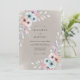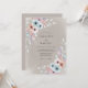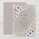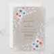 Flores delicadas en tonos suaves de azul y rosa melocotón se entrelazan con vegetación silvestre suave. Este diseño romántico evoca una atmósfera soñadora y etérea, perfecto para una celebración caprichosa.