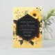 Una composición dramática y moderna que presenta flores representadas vívidamente. Anémonas amarillas brillantes y botón de oro con centros oscuros crean un contraste llamativo contra un fondo pastel suave. Ramas de vegetación delicada y flores más pequeñas añaden profundidad a este arreglo elegante y pictórico, perfecto para una unión contemporánea.