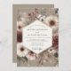 Experimenta una romántica atemporal con este elegante diseño botánico. Una paleta de colores sofisticada de rosa madera polvorienta, borgoña profundo y crema suave crea una atmósfera sombría y encantadora. La obra de arte presenta un arreglo exuberante de anémonas pintadas, dalias y follaje delicado para una unión verdaderamente inolvidable.