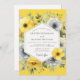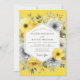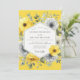 Abraza una estética moderna y vibrante para tu día especial. Este diseño elegante presenta una hermosa disposición de anémonas pictóricas en tonos contrastantes de amarillo canario soleado y gris pizarra sofisticado. Botánicos delicados y frondosos se dispersan por todas partes, sobre un fondo amarillo alegre. La composición artística crea una atmósfera chic y alegre para una unión memorable.