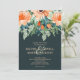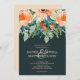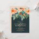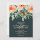 Elegante acuarela de flores en tonos melocotón a naranja adornada con un follaje verde verde azulado a jade sobre un oscuro fondo verde azulado con los detalles de la ceremonia boda en letras de melocotón pálido de moda. Una elección moderna pero sencilla para cualquier invitación a una boda de temporada. Cambie el fondo a cualquier color para que coincida con el tema boda. COINCIDIENDO elementos de nuestra colección.