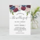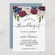 Invitaciones de boda elegantes y chic con flores acuarela y flores campestres rústicas en rosa pálido, burgundy y azul marino. La parte trasera de la tarjeta es en azul polvoriento moderno. Agregue fácilmente los detalles de su boda personalizados.