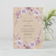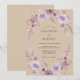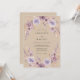 Este diseño presenta un delicado arreglo floral aéreo en tonos suaves de lavanda y rosa apagado. Elementos botánicos sutiles y un efecto de acuarela romántica crean una atmósfera soñadora y etérea. Perfecto para una celebración de primavera o verano.
