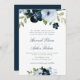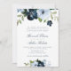 Un diseño de temática boda azul con flores azul acuático y follaje. Un diseño perfecto para tu boda de invierno y primavera. Puede personalizar el texto y el color de la invitación de boda.