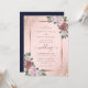 Invitación Boda floral azul de la marina rosa Rosa Gold Rubor