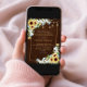 Crea la invitación tradicional de boda perfecta con este cálido y moderno diseño floral de girasol, color amarillo y azul polvoriento con tipografía de escritura con letras a mano, fondo de madera de granero y luces de cuerda. Vea la colección completa aquí: https://www.zazzle.com/collections/rustic_wood_sunflower_dusty_blue_floral_wedding-119827219260745920 Póngase en contacto con el diseñador para ver los productos que no están en la colección. Copyright Elegant Invita, todos los derechos reservados.