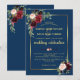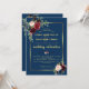 Invitación Boda Floral Azul Marino Borgoña Marco Dorado