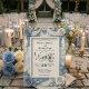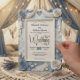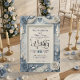 Eleva tu boda romántica de primavera con este diseño floral de relieve falso azul polvoriento, que presenta impresionantes ilusiones de papercraft y tipografía elegante.
