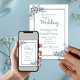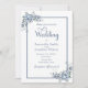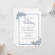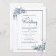 Esta moderna invitación a la boda azul turquesa es una elegante elección clásica para la novia elegante. La redacción moderna tiene el guión de caligrafía que destaca la tipografía. Encima, todo está decorado con un marco y un fondo floral azul polvoriento.