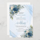 Invitación Boda Floral Blanca Azul Dusty Azul Azul