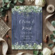 Invitación de boda floral blanca de eucalipto de madera Navy | Invitación de boda botánica rústica con verde acuarela | Papelería de boda de bosque de casa de campo moderna