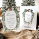 Descubre la magia de una boda de invierno con nuestros elegantes piñones de invierno y la invitación a la boda blanca de flores. Decorado con exquisitos acuarelas blancas y delicados pinos y ramos de flores, esta invitación seducirá a los clientes. Su característica única - un sitio web Boda RSVP en la parte trasera, integra la tradición con las comodidades modernas. Inspirar amor y calidez en esta temporada festiva con nuestra atractiva invitación estética.
