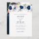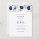La invitación a la boda floral blanca y azul de invierno es encantadora con su impresionante horizonte azul y su floral blanca pura, acompañada de una tipografía sofisticada. Este exquisito diseño permite añadir fotos de la pareja, irradiando elegancia atemporal perfecta para un boda clásico y lujoso. Sus detalles elegantes y sus colores armoniosos prometen hacer su día especial inolvidable.