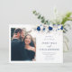 Invitación Boda floral blanca y azul de la foto moderna Horiz