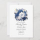 Invitación a bodas florales en blanco y azul marino con acentos de personalizable dorado a los detalles de tu evento.