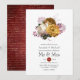 Invitación a la boda de una flor borgoña, blanca y dorada con una caligrafía vintage, personalizable inverso a los detalles de tu evento.