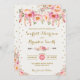 Preciosa invitación de boda con temática bohemio que presenta un atrapasueños floral de acuarela femenina en rosa y dorado