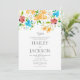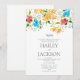 Esta invitación de boda con tema botánico presenta un marco floral de sol botánico de verano naranja, rosa, azul y menta que rodea los detalles de su boda. Dé a sus invitados una excelente primera impresión de la boda que se avecina, esta tarjeta será una adición fantástica a sus eventos de boda.
