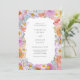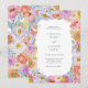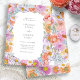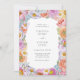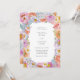 Invitación de boda Floral Bright. Causa una primera impresión vibrante con esta atrevida y brillante invitación de boda, perfecta para un evento de primavera, verano u otoño caprichoso lleno de personalidad. Un marco de estilo retro destaca tus detalles sobre un fondo de coloridas flores pintadas a mano, incluyendo peonías rosa, fucsia brillante, naranja y amarillo dorado, rosas lavanda púrpura, delphinium azul, margaritas alegres, flores silvestres y una delicada mariposa revoloteando con encanto. El patrón coordinado en la parte posterior lo une todo con una elegancia juguetona. Establece el tono para una celebración tan alegre y única como tu amor: personaliza hoy este diseño radiante.