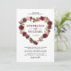Invitaciones de boda elegantes con un corazón floral de acuarela en rojo marsala, borgoña y rosa suave, y una plantilla de boda moderna.